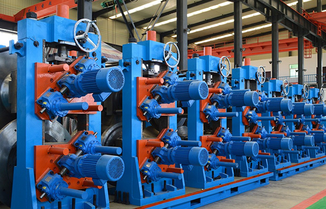 成品鋼管的2次加工-圓管變方管 ,為整套生產線設計而成,由一臺驅動源帶動兩臺絲桿升降機,同步聯動工作。每個單元上下各一組,整套傳動系統可單獨調節,也可實現同步聯動工作,為該生產線提供機械和驅動控制系統的整體解決方案。