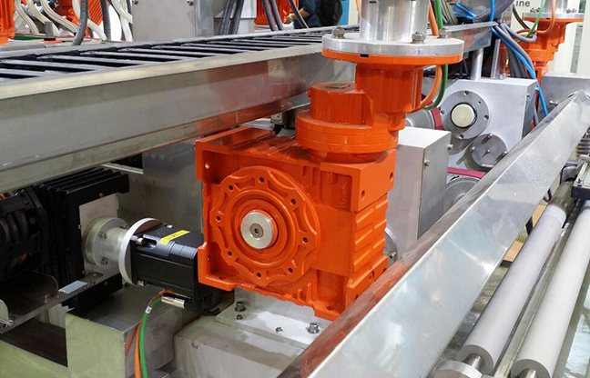 齒輪減速機設計應用于驅動紡織機械托輥軸的旋轉動作,生產線上采用多臺齒輪減速機驅動,同時配有同步電機控制驅動系統,可實現多臺同步工作,為紡織機械提供驅動控制解決方案。